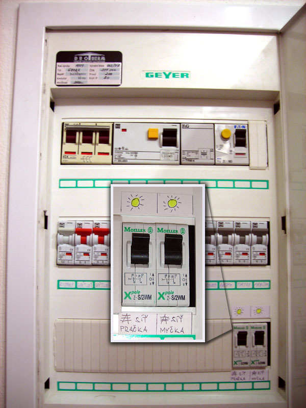 Po zkušenostech, že je možné na elektrárnu připojit myčku a pračku, jsem přidal do domovního rozvaděče dva 16A dvojité přepínače fází z distribuční sítě a elektrárny na připojení pračky a myčky. Přepínač přepíná jak fázi tak nulák. Teď není nutné tahat prodlužovačku, ale lze rovnou přepnout myčku a pračku na elektrárnu při slunečném dni. Je však nutné dodržet postup aby pračka a myčka nepracovaly současně, to by Vertex nezvládl a přepnul by na distribuční síť. V letním období lze touto úpravou za den zvládnout až tři plné cykly praní nebo mytí nádobí. Toto využití přebytků výkonu posunulo vyrobený výkon nad 10kWh denně!